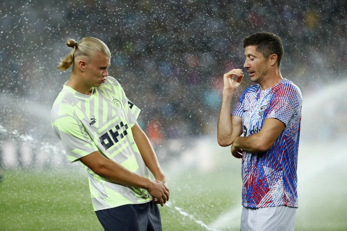 Ο Ρόμπερτ Λεβαντόβσκι τα έλεγε με το Έρλινγκ Χάλαντ πριν το φιλικό της Μπαρτσελόνα με την Μάντσεστερ Σίτι, όμως υπολόγιζαν δίχως το ποτιστικό του γηπέδου.