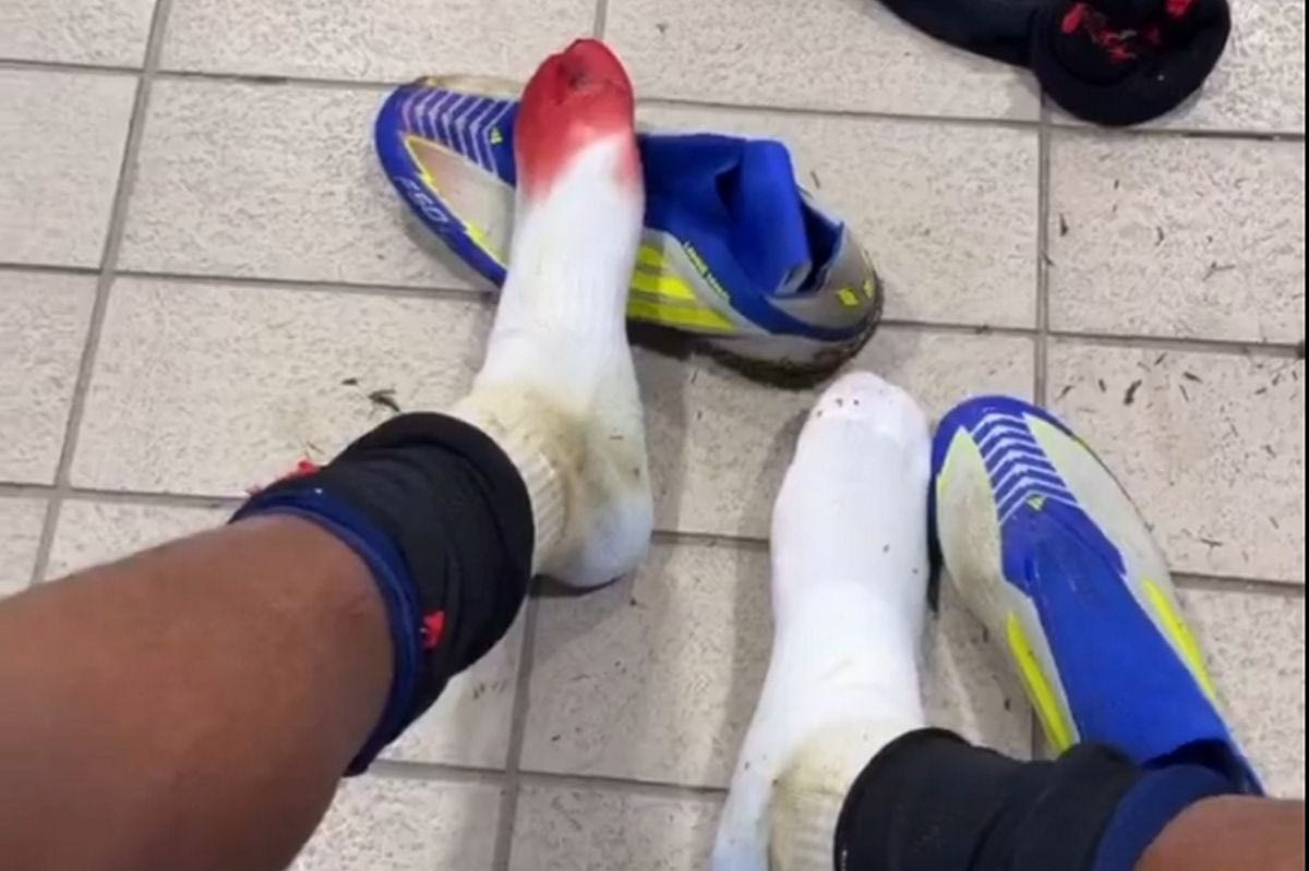 Συγκεκριμένα, έδειξε το ματωμένο πόδι του, σχολιάζοντας την απόφαση του ρέφερι να μην σφυρίξει φάουλ: “Δεν είναι φάουλ” έγραψε, συνοδεύοντας το σχόλιο του με emoji που κλαίει από τα γέλια.