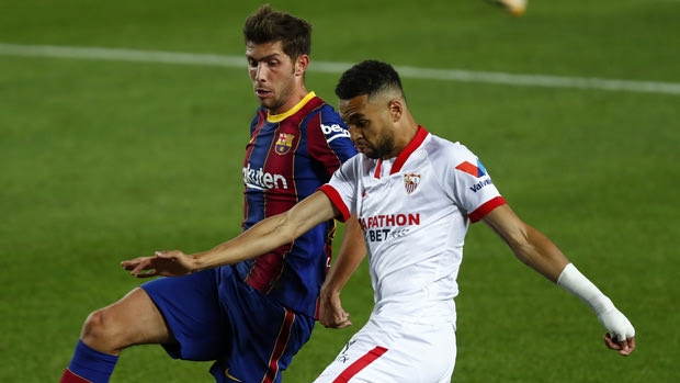 Η Μπαρτσελόνα και η Σεβίλλη έμειναν ισόπαλες στο Καμπ Νου με σκορ 1-1 με τα δύο γκολ να μπαίνουν στο πρώτο δεκάλεπτο. Ο Ντε Γιόνγκ (8') άνοιξε το σκορ, ισοφάρισε ο Κουτίνιο (10').