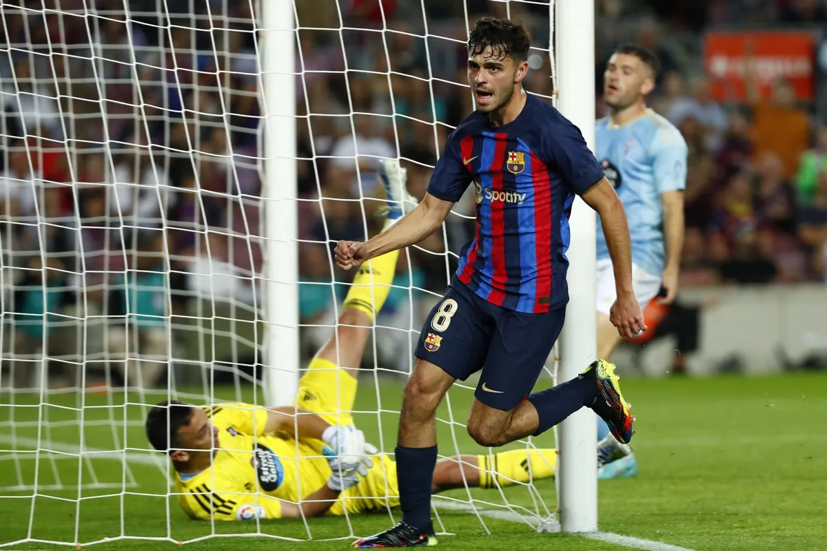 Ο Πέδρι πανηγυρίζει γκολ με την Μπαρτσελόνα απέναντι στην Θέλτα σε ματς της La Liga | 9 Οκτωβρίου 2022 @2022 Joan Monfort/AP IMAGES