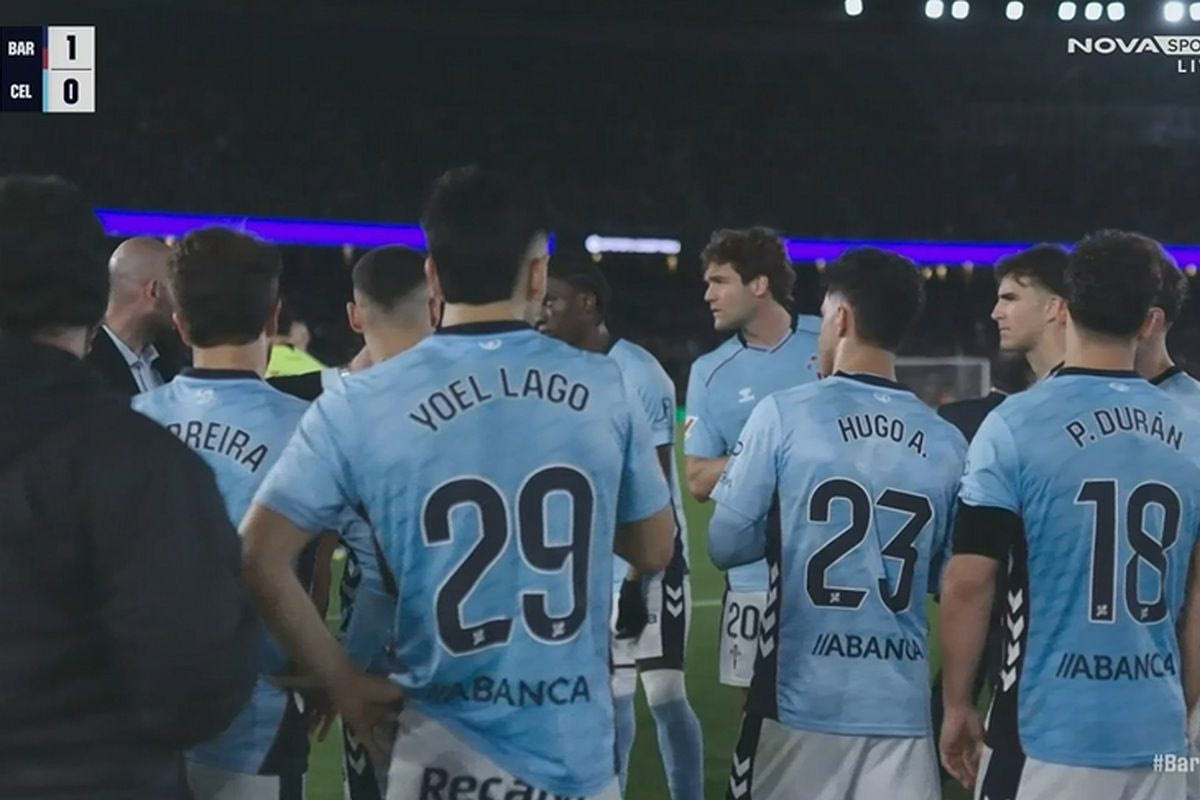 Ο αγώνας μεταξύ της Μπαρτσελόνα και της Θέλτα διεκόπη προσωρινά λίγο πριν από το φινάλε του πρώτου μέρους, με τα ιατρικά επιτελεία των δύο ομάδων να ανεβαίνουν στην εξέδρα που κάθονταν οι οπαδοί των φιλοξενουμένων για να προσφέρουν πρώτες βοήθειες σε φίλο των Γαλιθιάνων.