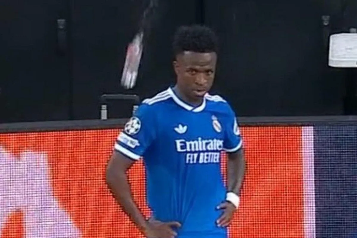 Στις καθυστερήσεις του αγώνα κι ενώ ο Βινίσιους ετοιμαζόταν να εκτελέσει ένα κόρνερ, ένα μπουκάλι έπεσε από την κερκίδα και τον πέτυχε.