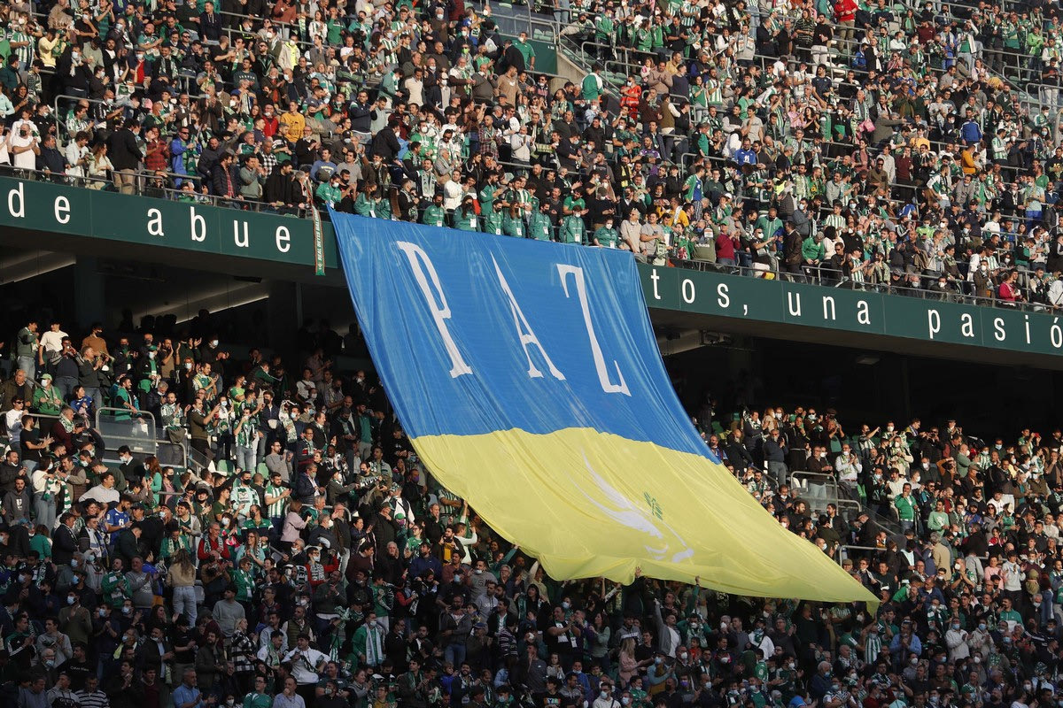 Οι φωνές για να μπει τέλος στη φρίκη του πολέμου εκπέμπουν από κάθε γωνιά του πλανήτη, με τους οπαδούς της Μπέτις να κρεμούν μία τεράστια σημαία της Ουκρανίας με τη λέξη "ειρήνη" στο πλαίσιο του αγώνα της ομάδας τους με την Άιντραχτ.