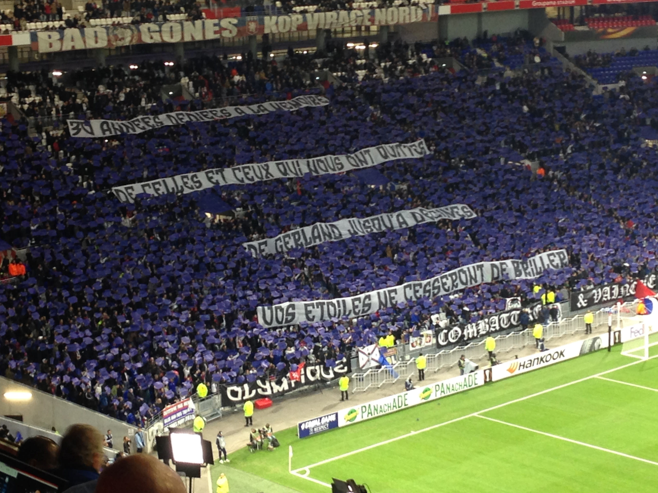 Ετσι, ο φίλαθλος κόσμος σε όλη την Ευρώπη έχασε μια μοναδική εμπειρία, που ζήσαμε (μόνο) σε αυτό το γήπεδο. Τους οπαδούς της Λιόν να τραγουδούν -την ίδια ώρα- διαφορετικά συνθήματα στα δύο άκρα του γηπέδου! “Θέλουμε, οι ποδοσφαιριστές να ακούν διαφορετικά συνθήματα όταν επιτίθενται και άλλα όταν αμύνονται”. Ετσι είχε εξηγήσει στο Sport24.gr το παράδοξο ακουστικό στον αγώνα με τον Απόλλωνα Λεμεσού, ο Emmanuel Ouisse, μέλος των σκληροπυρηνικών οπαδών της γαλλικής ομάδας “Bad Gones”.