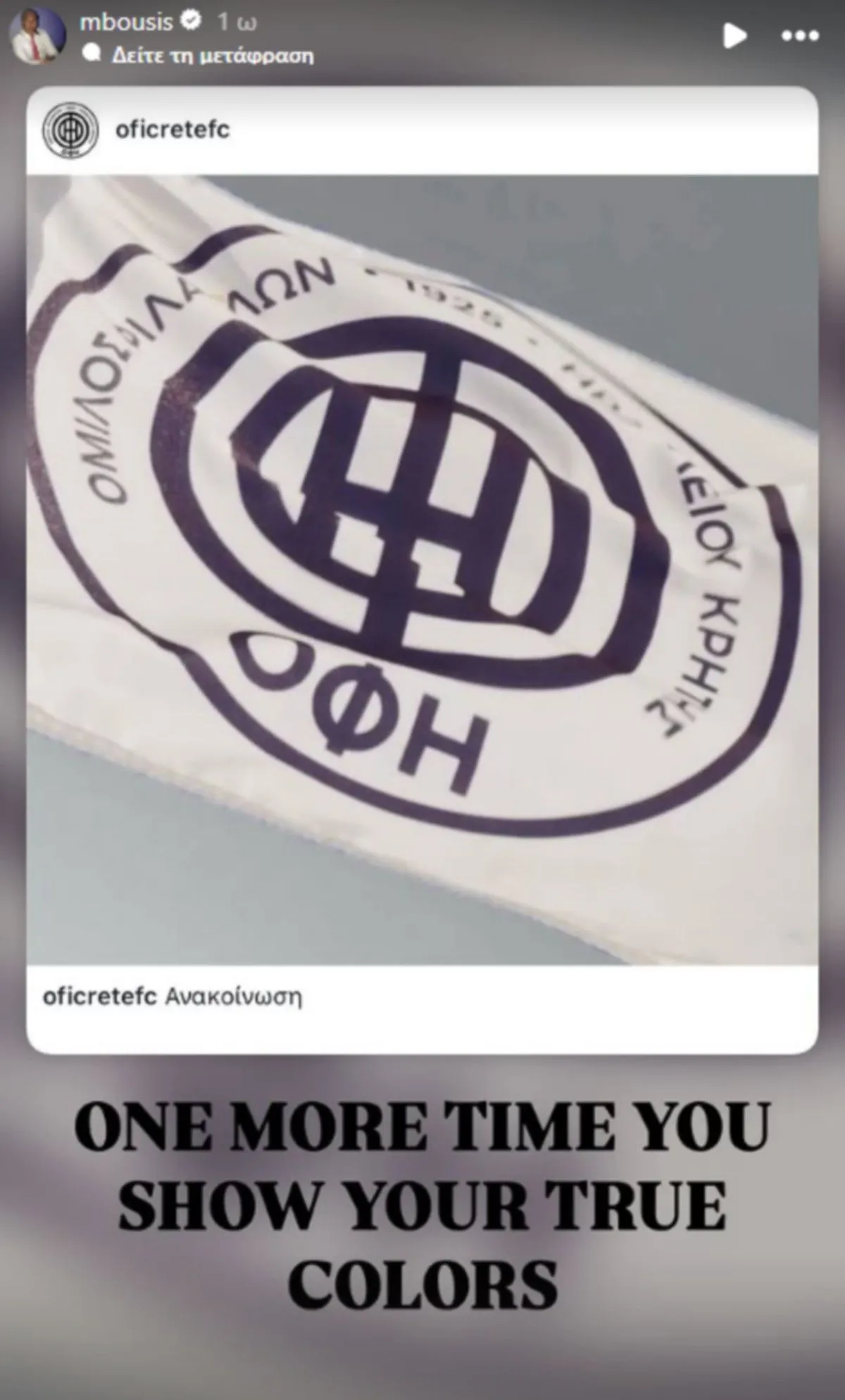 O ιδιοκτήτης της ΠΑΕ ΟΦΗ, Μιχάλης Μπούσης, με σειρά story έδειξε την δυσαρέσκειά του για τον μη ορισμό ξένου VAR στον τελικό του Κυπέλλου Ελλάδας Bettson.