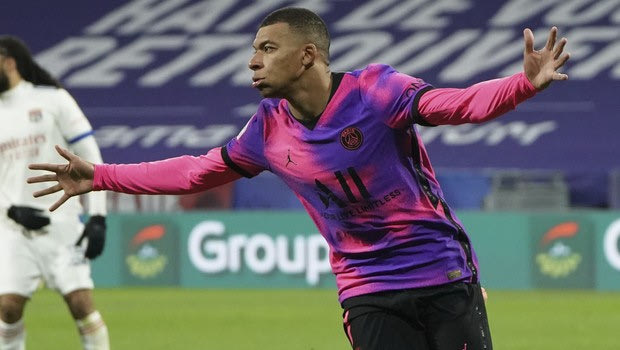 Ο Εμπαπέ πανηγυρίζει το γκολ που σημείωσε κόντρα στη Λιόν για το πρωτάθλημα Laurent Cipriani / Associated Press