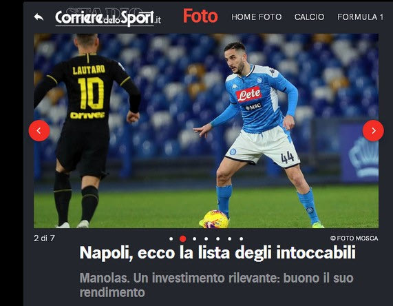 “Μανωλάς, μία επένδυση με καλή απόδοση”, αναφέρει χαρακτηριστικα το ιταλικό μέσο, σύμφωνα με το οποίο στο γκρουπ των έξι… ακούνητων παικτών πέρα του Μανωλά θα είναι οι: Ζιελίνσκι, Ινσίνιε, Φαμπιάν Ρουίθ, Ντέμε και Ντι Λορέντσο.