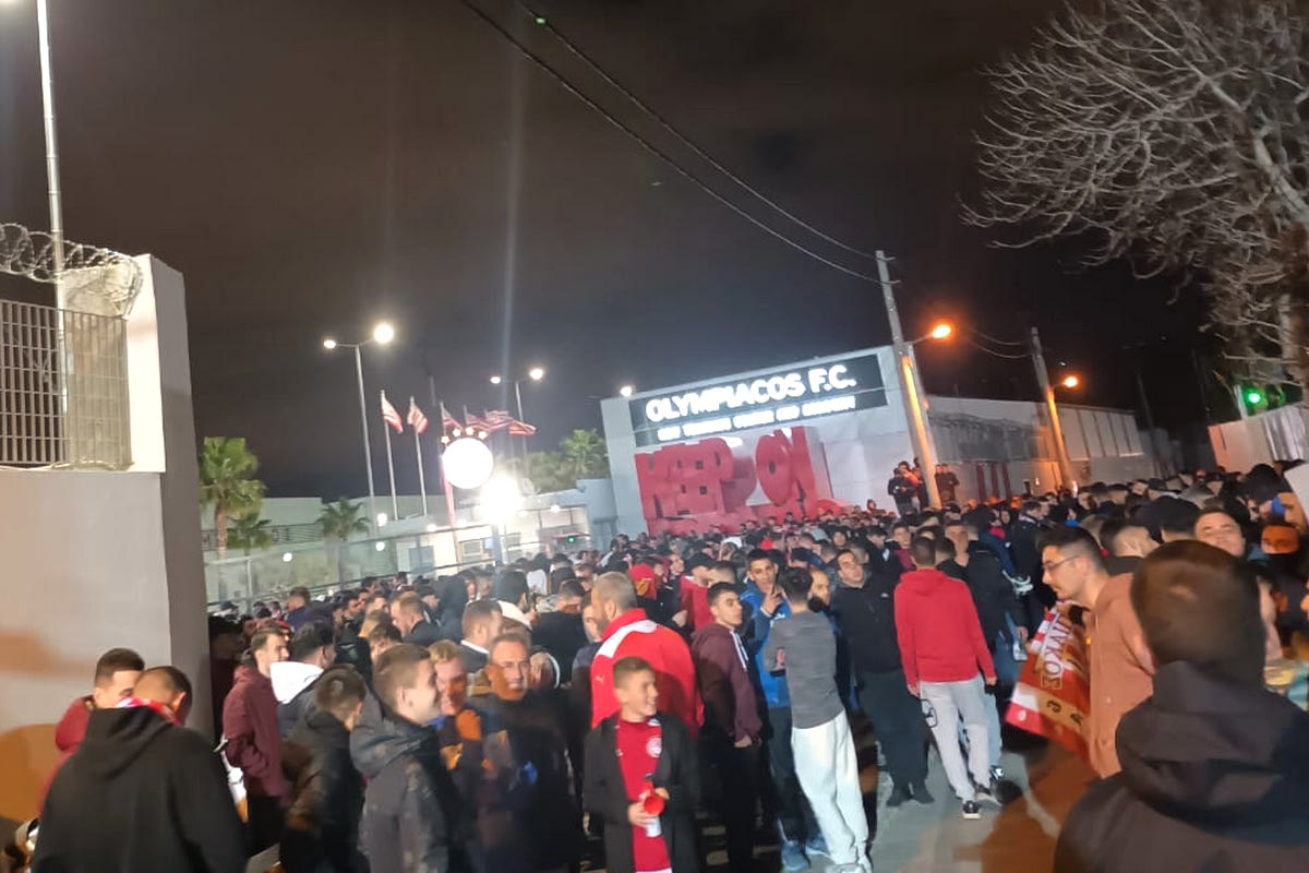 Εκατοντάδες φίλαθλοι των ερυθρόλευκων περιμένουν ήδη την αποστολή του Ολυμπιακού για να αποθεώσουν τον Μίτσελ και τους παίκτες τους για τη μεγάλη νίκη.