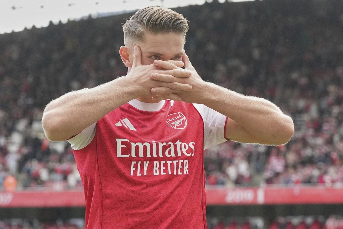 Ο Βίκτορ Γιόκερες πανηγυρίζει γκολ με τη φανέλα της Άρσεναλ