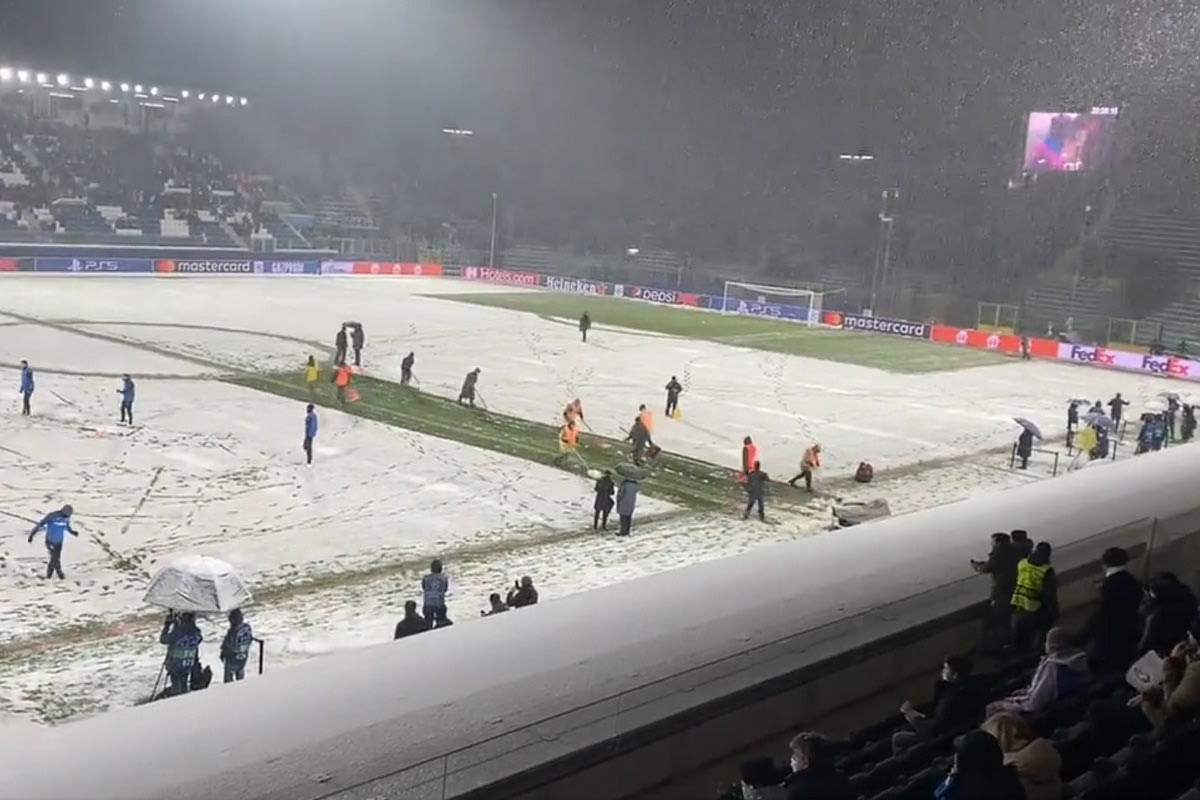 Αναβλήθηκε τελικά η αναμέτρηση για την τελευταία αγωνιστική του 6ου ομίλου του Champions League. Ο αγωνιστικός χώρος του “Ατλέτι Ατζούρι” ντύθηκε στα λευκά από το χιόνι που έπεσε λίγη ώρα πριν από τον αγώνα, ενώ οι διαιτητές έκαναν έλεγχο για να διαπιστώσουν αν η μπάλα κυλάει κανονικά κι αν ο αγώνας μπορεί να διεξαχθεί.