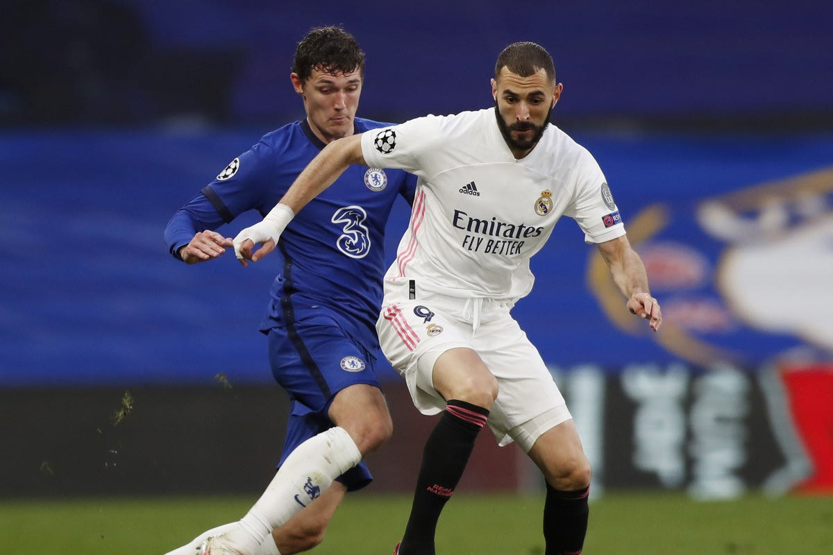 Μπενζεμά και Κρίστενσεν μάχονται για την μπάλα στο Τσέλσι - Ρεάλ © 2021 Alastair Grant/ASSOCIATED PRESS