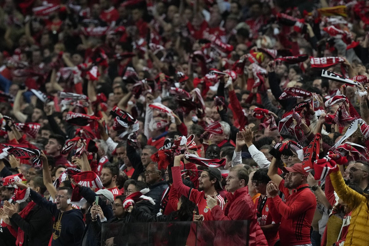 Οπαδοί της Μπενφίκα στην αναμέτρηση κόντρα στη Γιουβέντους 2022 AP Photo/Armando Franca