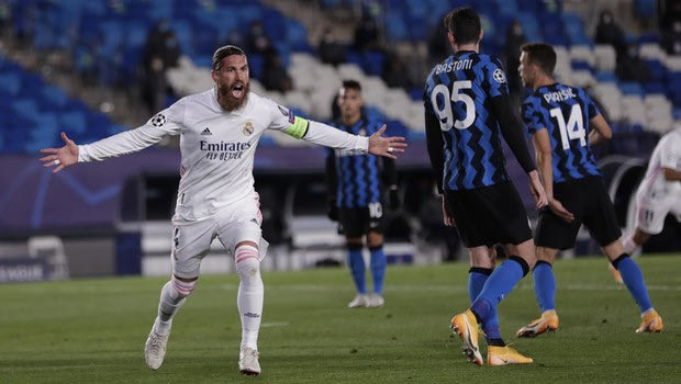 Ο Σέρχιο Ράμος πανηγυρίζει το γκολ που πέτυχε κόντρα στη Ίντερ