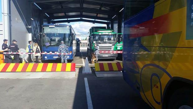Αφού ολοκληρωθεί με επιτυχία το πρώτο στάδιο ταυτοποίησης των στοιχείων, γίνεται ο σωματικός έλεγχος προκειμένου να επιβεβαιωθεί πως ο φίλαθλος δεν φέρει κάποιο αντικείμενο που θα θέσει σε κίνδυνο τη ζωή των υπολοίπων. Την ίδια ώρα, ο στρατός της Ρωσίας πραγματοποιεί ελέγχους σε οχήματα στα ειδικά διαμορφωμένα κουβούκλια, ζητώντας, μάλιστα, απ’ τους κατόχους τους να ανοίξουν το καπό, τις πόρτες αλλά και το πορτμπαγκάζ προκειμένου τα ειδικά εκπαιδευμένα σκυλιά να εξετάσουν κάθε σπιθαμή τους.