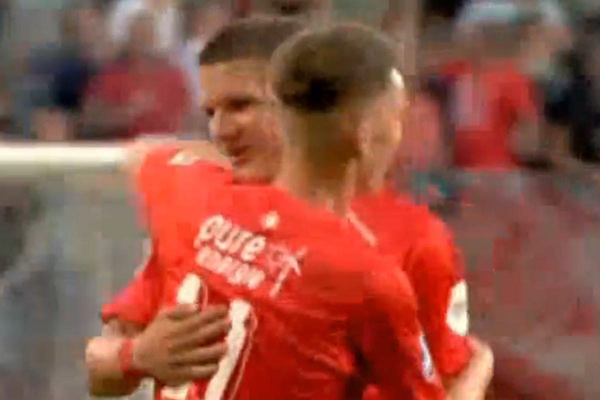 Ο Τζόλης πανηγυρίζει ένα από τα δύο γκολ που σημείωσε κόντρα στην Τσουκαρίτσκι