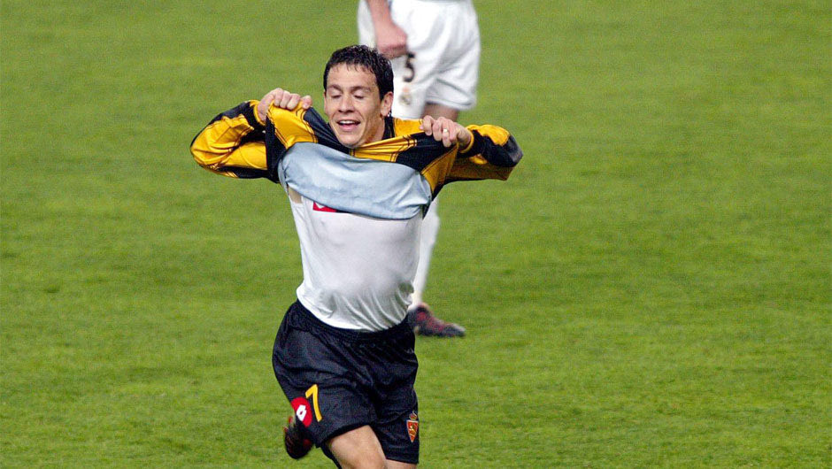 Ο Λουτσιάνο Γκαλέτι έχει πετύχει το νικητήριο γκολ της Σαραγόσα στην παράταση και πανηγυρίζει.