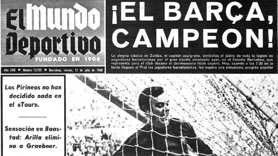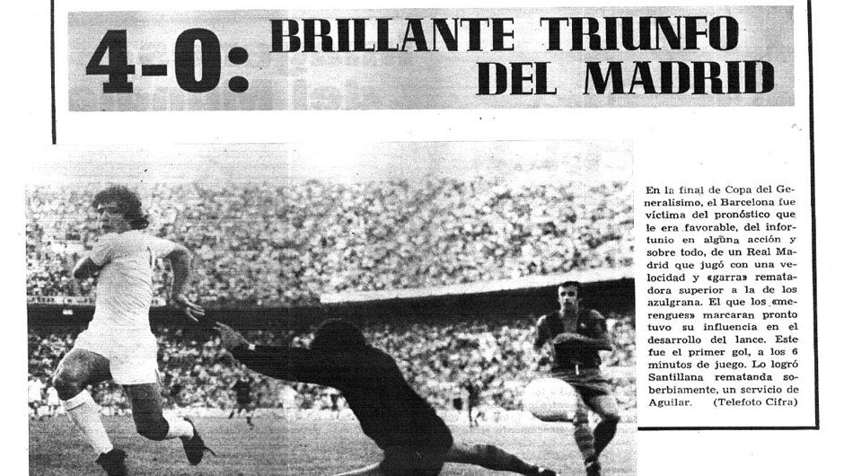 Χρειάστηκε να περάσουν 32 χρόνια για να πάρει η Μπαρτσελόνα τη ρεβάνς από τη Ρεάλ και μάλιστα μέσα στο σπίτι των «μερένγκες». Η διοργάνωση ονομαζόταν πλέον Copa del Generalísimo προς τιμήν του δικτάτορα Φράνκο και ο αγώνας, που φιλοξενήθηκε στο «Σαντιάγο Μπερναμπέου», έμεινε γνωστός ως ο «τελικός των μπουκαλιών» (la final de las botellas). Η Μπαρτσελόνα νίκησε με ένα αυτογκόλ του Θουνθουνέγκι και οι θεατές, θεωρώντας ότι η Ρεάλ είχε αδικηθεί από τη διαιτησία, άρχισαν να πετάνε μπουκάλια μέσα στον αγωνιστικό χώρο!
