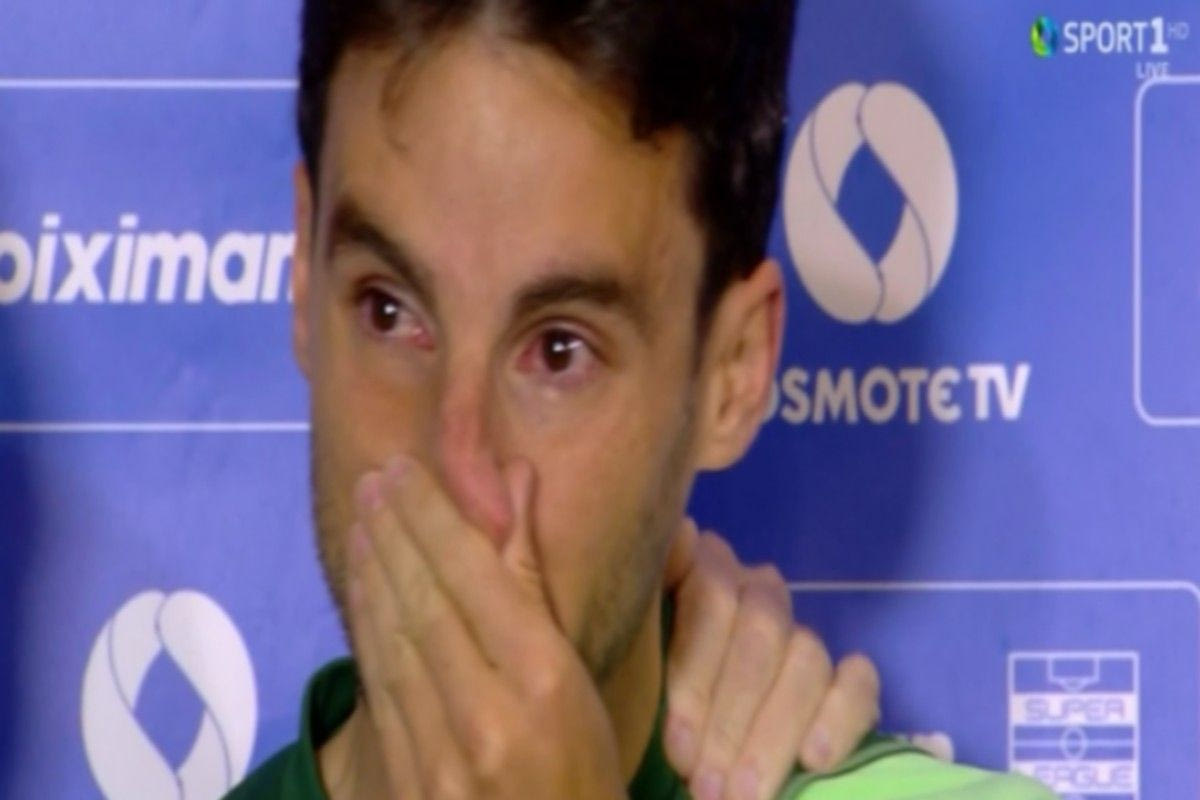 Όταν ρωτήθηκε για τη συμπλήρωση 100 αγώνων στο πρωτάθλημα με τον Παναθηναϊκό ξαι αν το περίμενε ο Ισπανός μπακ βούρκωσε και είπε: