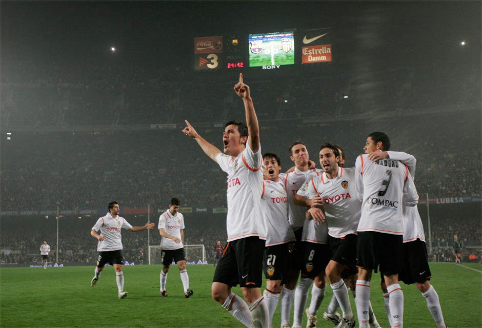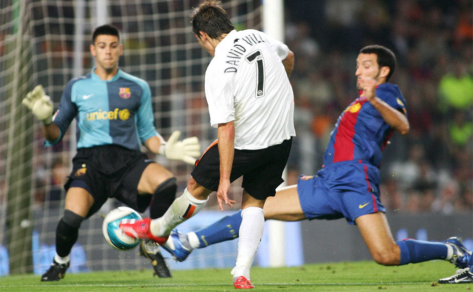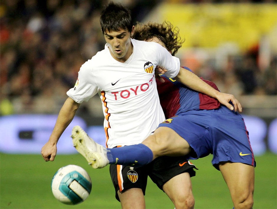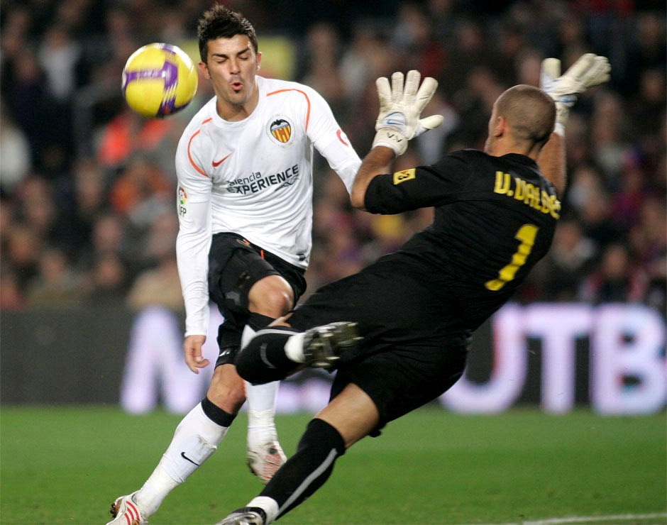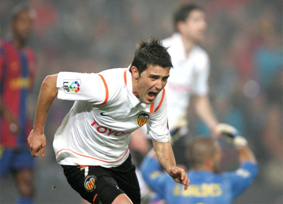 3. Το καλοκαίρι του 2005, μετά από δυο επιτυχημένες σεζόν στη Σαραγόσα (32 γκολ σε 73 συμμετοχές), ο Βίγια πήρε μεταγραφή στη Βαλένθια (12 εκ. ευρώ). Στην 4η αγωνιστική του πρωταθλήματος εκείνης της περιόδου (2005/06), η Μπαρτσελόνα υποδέχτηκε τους «τσε» στο «Καμπ Νόου» και ο Βίγια σκόραρε δις στο τελικό 2-2. Εδώ τον βλέπουμε να πανηγυρίζει το πρώτο από τα δυο τέρματά του (21/9/2005).
