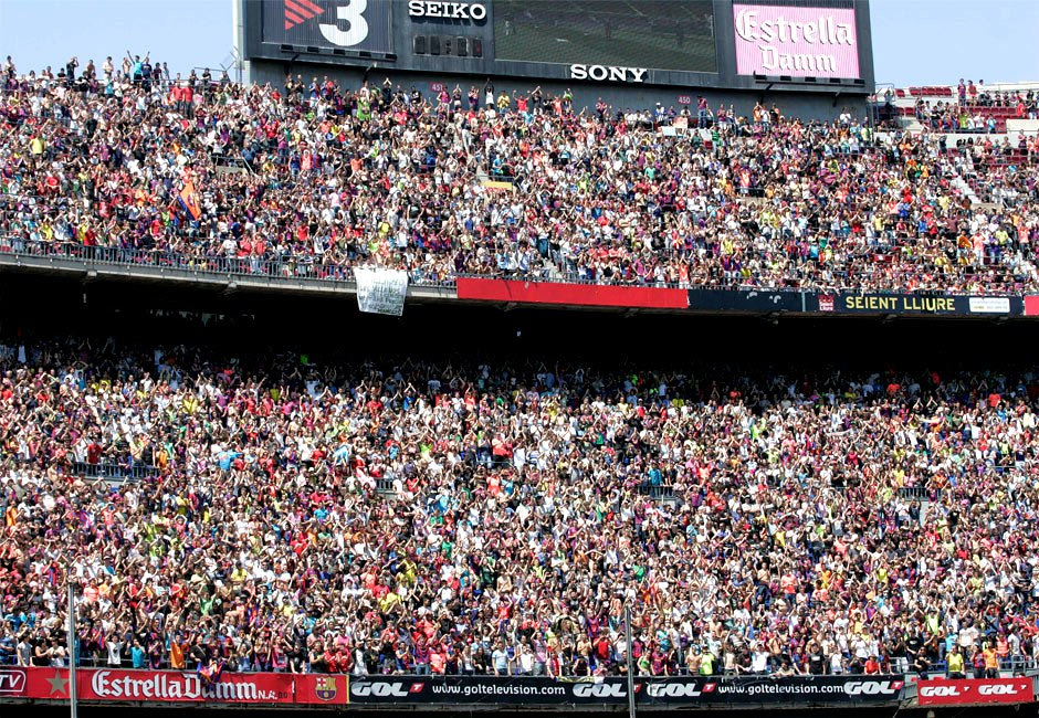 14. Αμέσως μετά την υπογραφή του 4ετούς συμβολαίου, ο Βίγια παρουσιάστηκε και στο «Καμπ Νόου», μπροστά σε 35.000 περίπου φίλαθλους που είχαν μαζευτεί εκεί για να αποθεώσουν το καινούργιο απόκτημα της ομάδας. Αυτή ήταν η εικόνα των κερκίδων του γηπέδου της Μπαρτσελόνα εκείνη την ημέρα (21/5/2010).