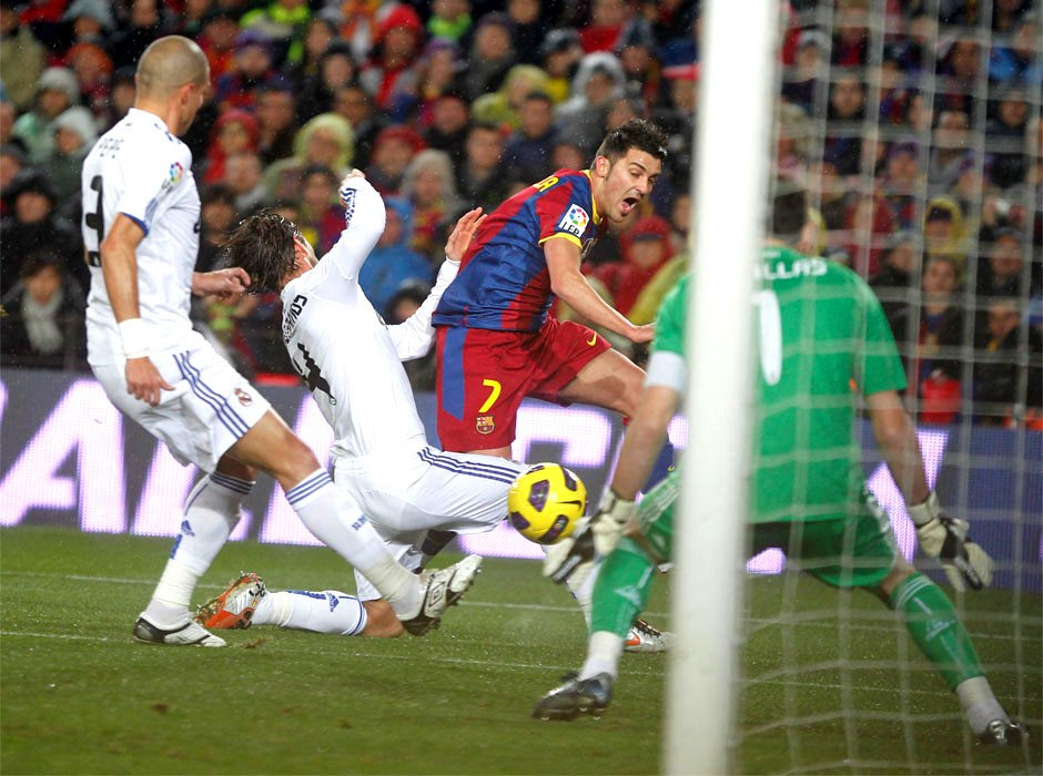 17. Το πρώτο clásico του Βίγια ήταν και το πρώτο για τον Ζοζέ Μουρίνιο. Στο αξέχαστο 5-0 ο «Guaje» πέτυχε δυο τέρματα, έδωσε μια ασίστ και αποθεώθηκε από την κερκίδα του «Καμπ Νόου». Εδώ σε μια επιθετική του προσπάθεια από εκείνο το παιχνίδι (29/11/2010).
