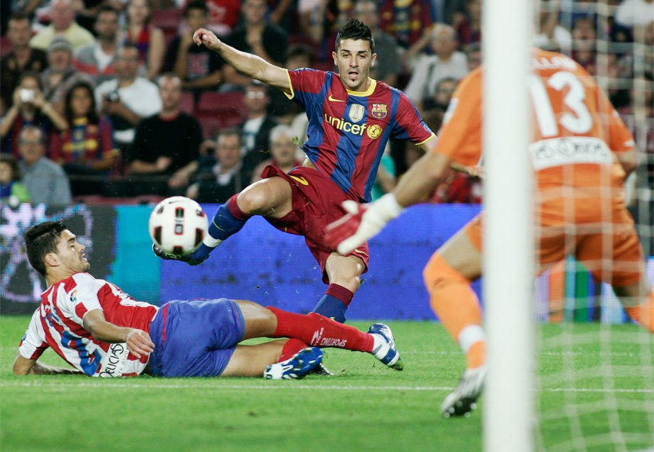 15. Στις 29 Αυγούστου ο Βίγια έκανε το ντεμπούτο του στην ισπανική Λίγκα με τη φανέλα της Μπαρτσελόνα απέναντι στη Ράθινγκ του Σανταντέρ. Πέτυχε το τρίτο γκολ της ομάδας του στο τελικό 3-0. Εδώ τον βλέπουμε να πανηγυρίζει εκείνο το τέρμα μαζί με τους συμπαίκτες του (29/8/2010).