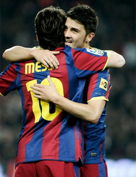 16. Δυο εβδομάδες αργότερα, ο Βίγια σκόραρε και στο ντεμπούτο του με τη Μπαρτσελόνα στο Τσάμπιονς Λιγκ, πετυχαίνοντας το δεύτερο γκολ της ομάδας του στο τελικό 5-1 επί του Παναθηναϊκού. Εδώ πανηγυρίζει εκείνο το τέρμα μαζί με τον Μέσι (14/9/2010).