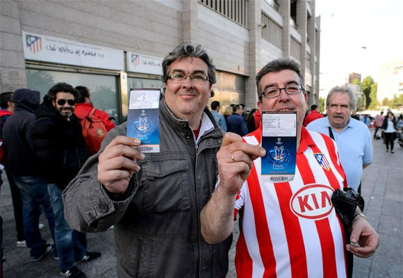 Η καθεμία από τις δυο φιναλίστ παρέλαβε από την UEFA 19.350 εισιτήρια για τις ανάγκες της, τα οποία διατέθηκαν με διαφορετικό τρόπο. Η μεν Ατλέτικο προτίμησε τις “ουρές”, βγάζοντας προς πώληση συγκεκριμένο αριθμό εισιτηρίων επί τρεις μέρες, που απευθύνονταν σε συγκεκριμένο αριθμό μελών και κατόχων διαρκείας. Όποιος ξενύχτησε ή περίμενε περισσότερο, είδε και το μαγικό χαρτάκι.
