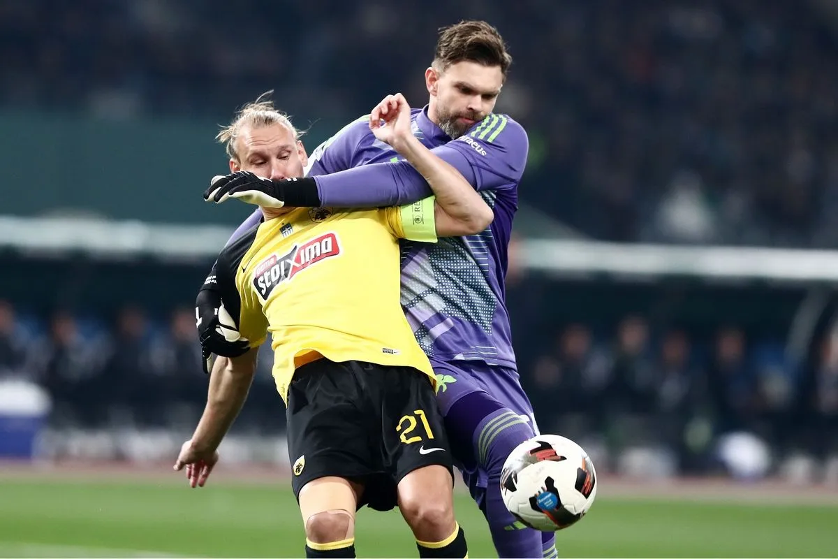 Δείτε το μαρκάρισμα του Ντραγκόβσκι πάνω στο Βίντα, στο οποίο οι παίκτες της ΑΕΚ διαμαρτυρήθηκαν έντονα για πέναλτι και αυτοί του Παναθηναϊκού για επιθετικό φάουλ.