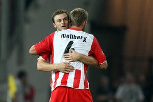 Εν τω μεταξύ, την Παρασκευή ο Όλοφ Μέλμπεργκ έδωσε το σύνθημα για τη διαδικασία των πλέι οφ, σε εκδήλωση χορηγού (μπύρα Carlsberg) της ΠΑΕ Ολυμπιακός, στην οποία έδωσαν το “παρών” και οι Αντώνης Νικοπολίδης, Λουτσιάνο Γκαλέτι.