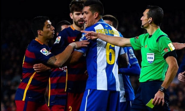 Η έκθεση του διαιτητή ανέφερε το εξής: “Μετά το τέλος της αναμέτρησης ο Λουίς Σουάρες περίμενε τους παίκτες της Εσπανιόλ στη φυσούνα και τους είπε τα εξής: ‘Εδώ σας περιμένω, είστε σκουπίδια’. Στην συνέχεια ενεπλάκησαν οι παίκτες των δυο ομάδων και χρειάστηκε η παρέμβαση του προσωπικού ασφαλείας και των τεχνικών επιτελείων των δυο ομάδων για να χωρίσουν τους παίκτες”.