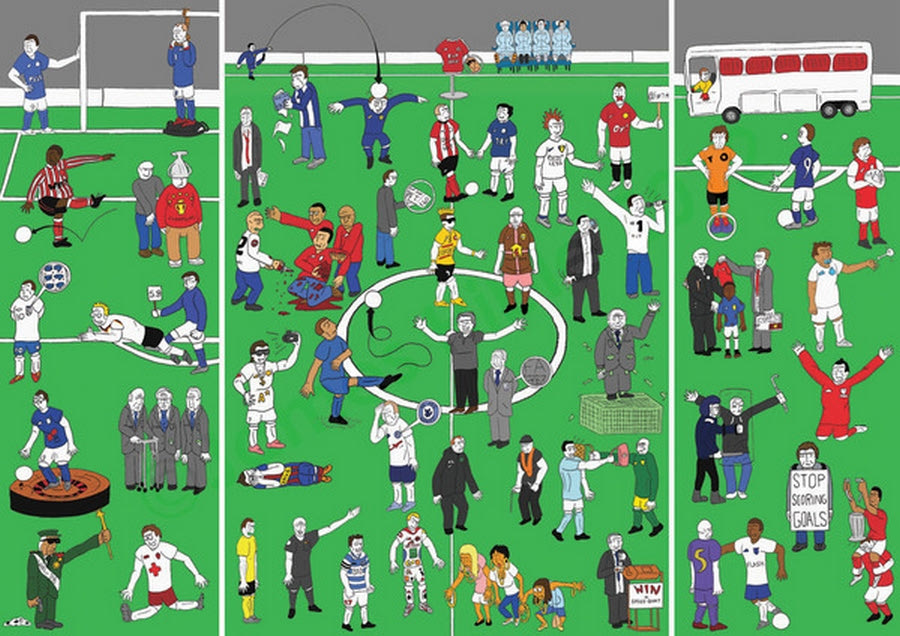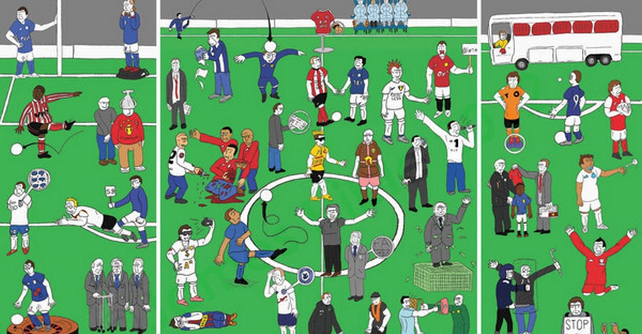 Ο Βρετανός καλλιτέχνης Τζέιμς Χιμπλ χώρεσε σε δυο εικόνες στιγμές από το ποδόσφαιρο με αρκετή δόση χιούμορ που ορισμένες φορές γίνεται ιδιαίτερα καυστικό (pics)