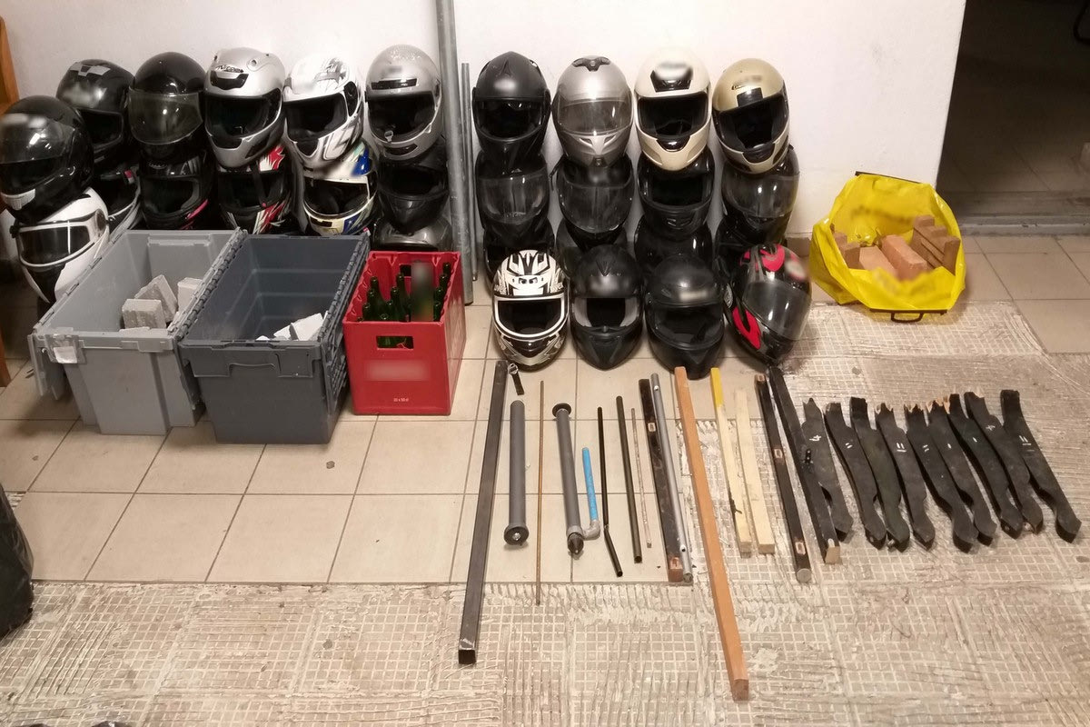 Μεταξύ άλλων βρέθηκαν και κατασχέθηκαν μαχαίρια, ψαλίδια, λοστοί, σιδερογροθιές και αντικείμενα πρόσφορα να προκαλέσουν σωματικές βλάβες.