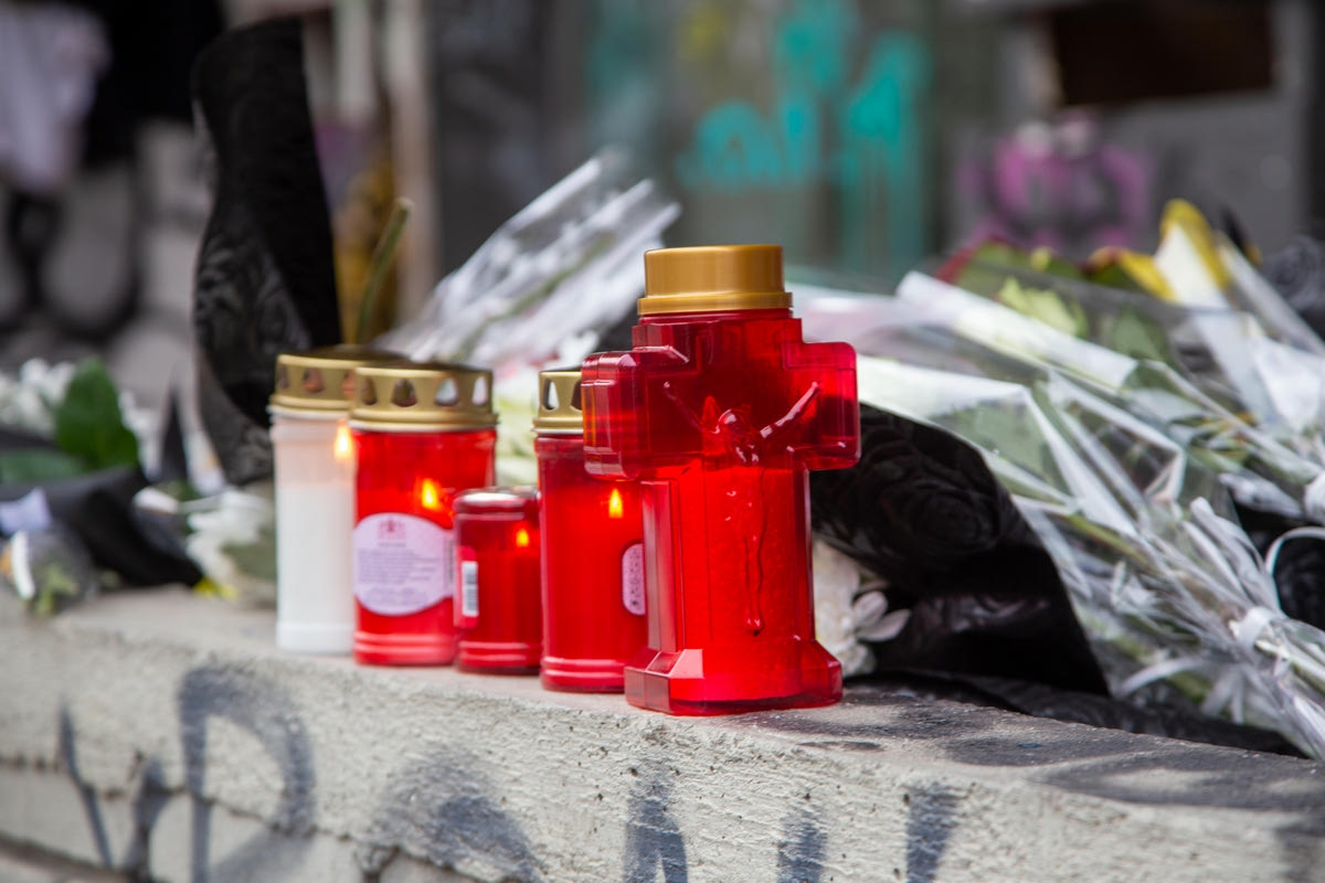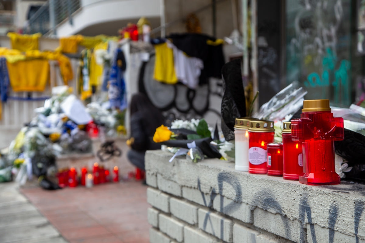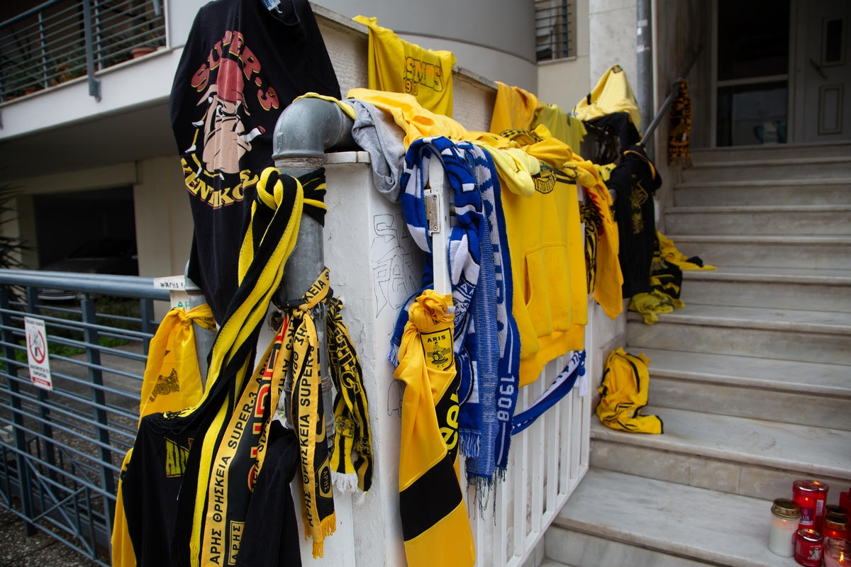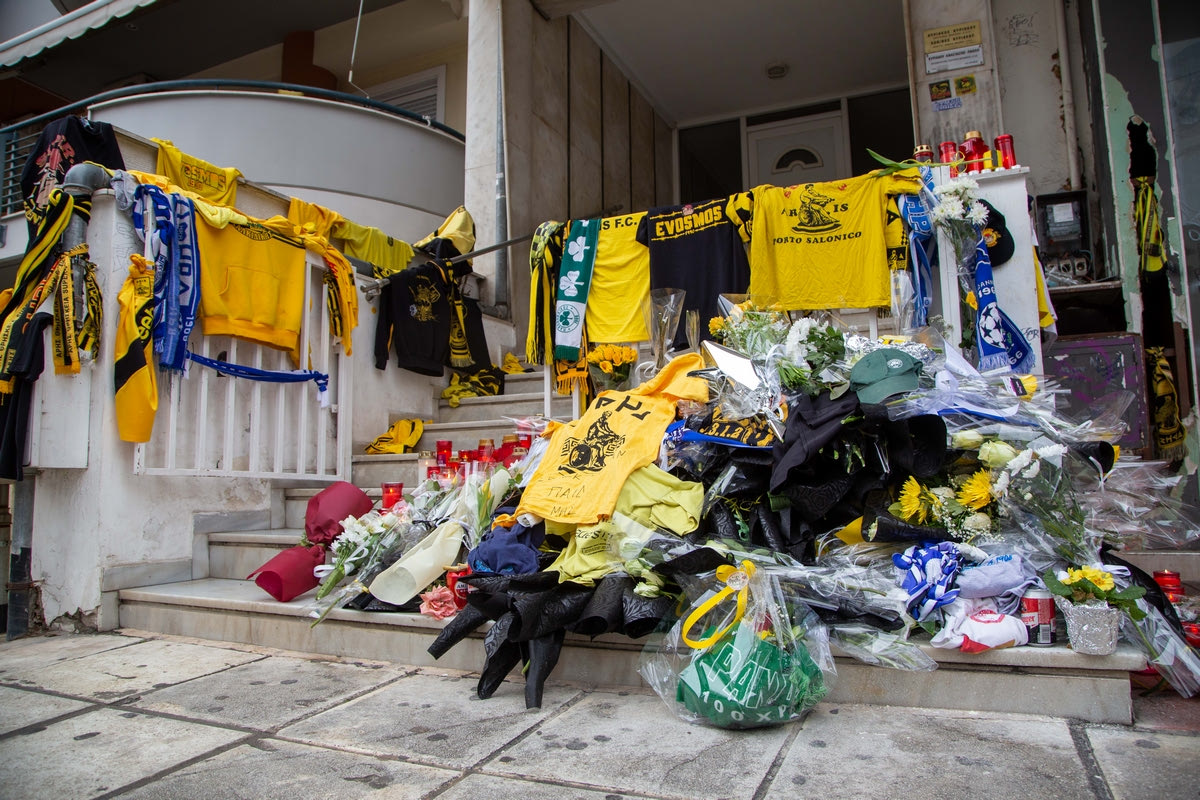 Το τραγικό συμβάν στην οδό Γαζή της περιοχής Χαριλάου στη Θεσσαλονίκη, μετά τα μεσάνυχτα της Δευτέρας (31/1), όπου άφησε την τελευταία του πνοή ο 19χρονος Άλκης έπειτα από δολοφονική επίθεση με δρεπάνι, γέμισε με λουλούδια, κεριά, φανέλες, κασκόλ και μηνύματα για τον χαμό του άτυχου νεαρού.