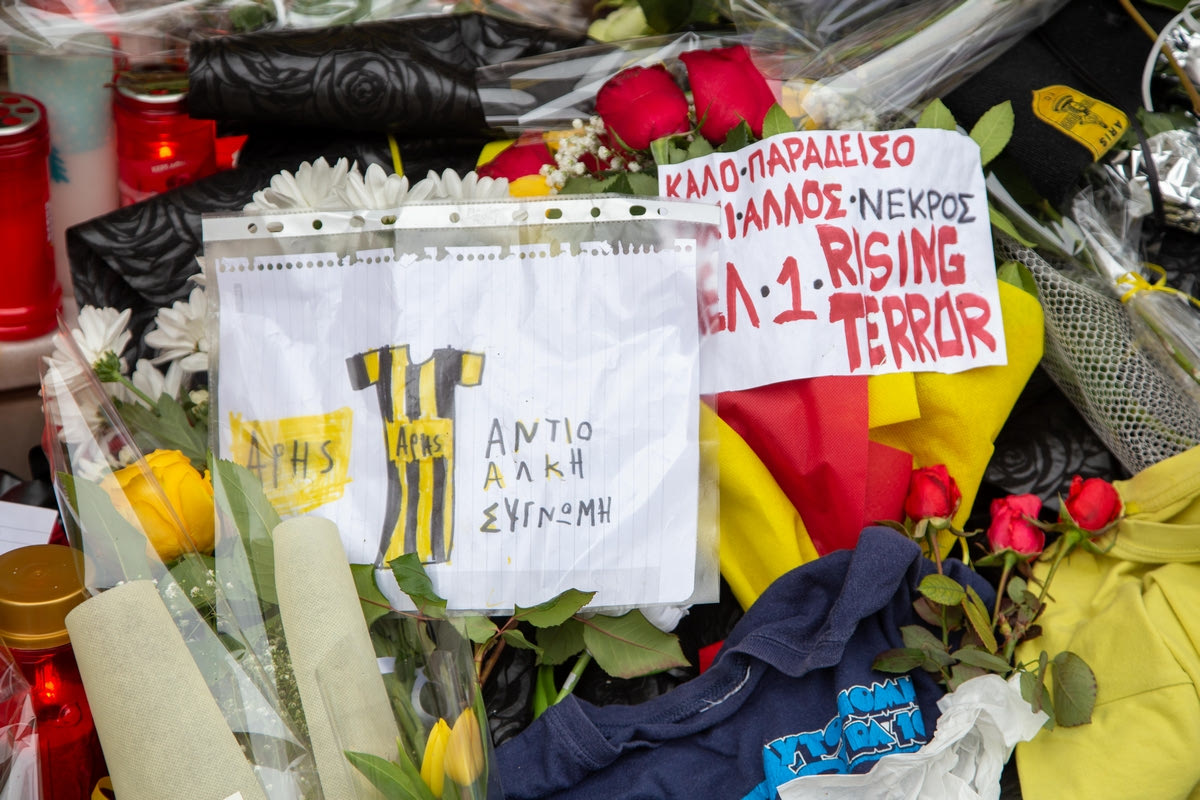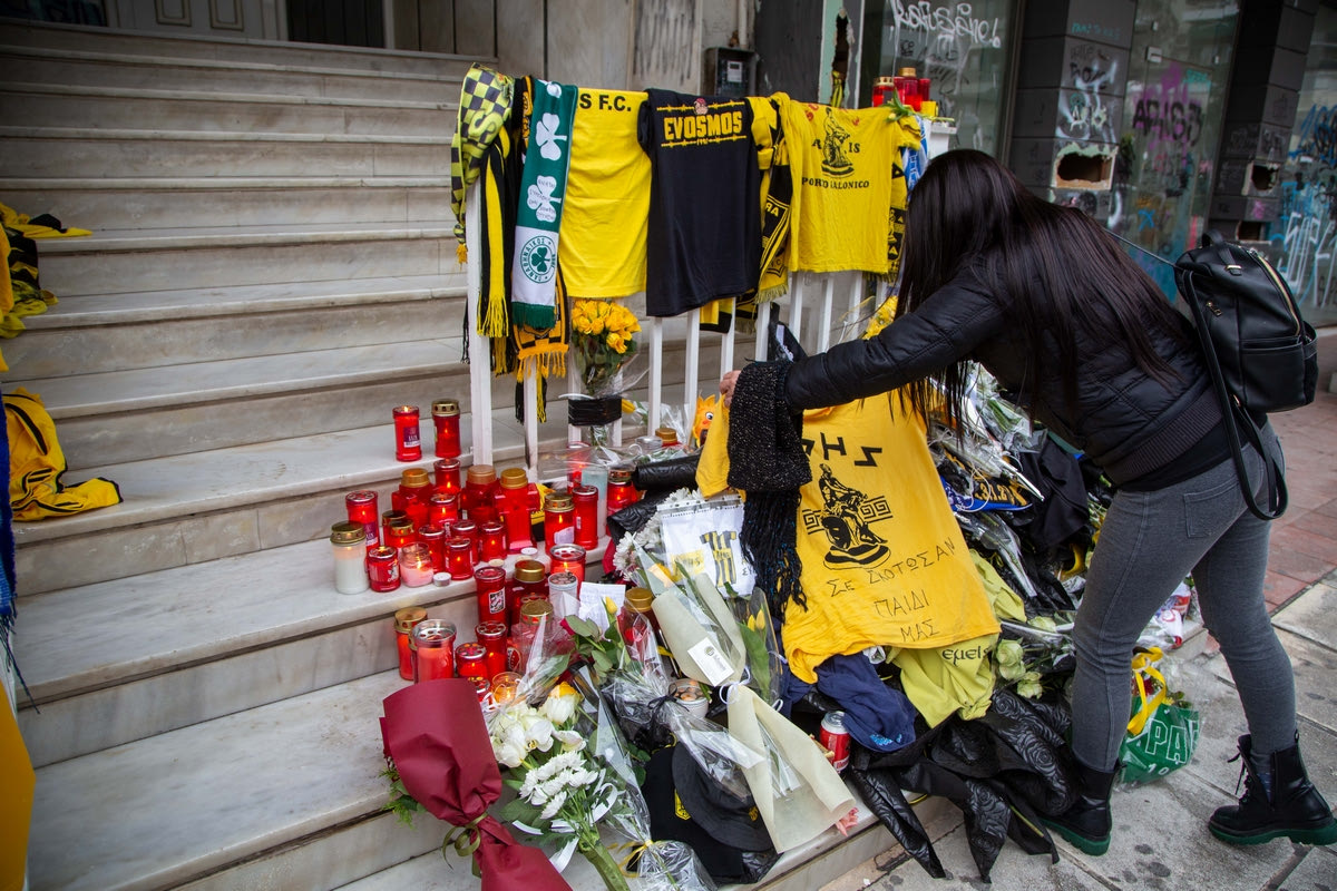 Με λουλούδια, κεριά, κασκόλ, φανέλες και δεκάδες μηνύματα πλημμύρισαν την Τετάρτη (2/2) το σημείο που δολοφονήθηκε ο άτυχος ο Άλκης, πολλοί άνθρωποι, εκφράζοντας τη λύπη και τον αποτροπιασμό τους για τον θάνατο του 19χρονου.
