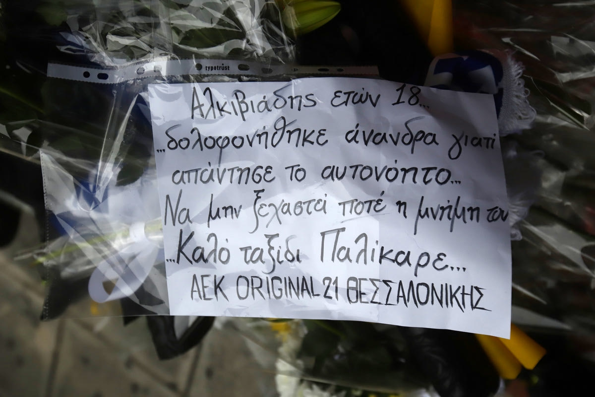 Μάλιστα, σε ένα γραπτό σημείωμα που άφησε ο σύνδεσμος της ΑΕΚ στη Θεσσαλονίκη έγραφε: “Αλκιβιάδης ετών 18… δολοφονήθηκε άνανδρα επειδή απάντησε το αυτονόητο. Να μην ξεχαστεί ποτέ η μνήμη του. Καλό ταξίδι παλίκαρε”.