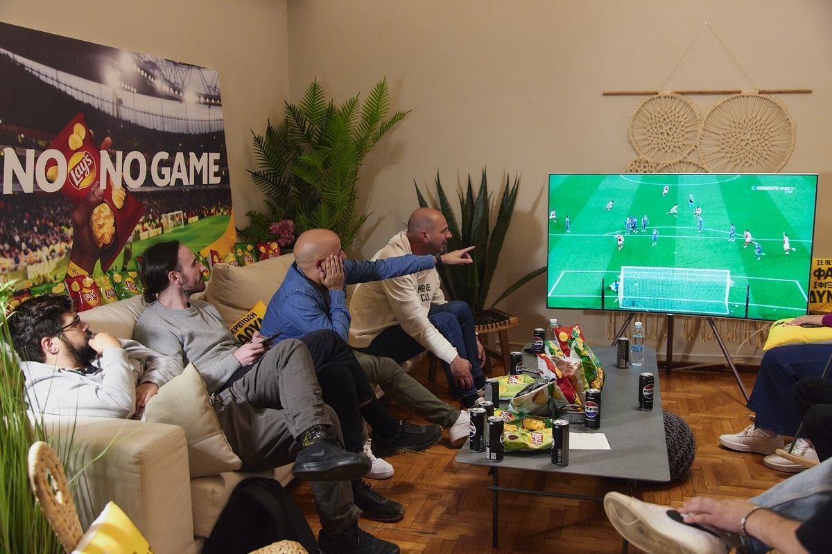 Το σκηνικό γνώριμο. Ένας άνετος καναπές, μια μεγάλη τηλεόραση με COSMOTE TV και παντού γύρω τα αγαπημένα Lay’s σε διάφορες γεύσεις. Για τους πιο κλασικούς τα γνωστά και αγαπημένα Lay’s με αλάτι, για άλλους αυτά με τη ρίγανη και για τους πιο “ψαγμένους” τα Lay’s με γεύση αλάτι & ξύδι. Το ψυγείο με τις παγωμένες Pepsi ήταν ακόμα μία “πινελιά” που συνέθεσε το τέλειο σκηνικό για μια απολαυστική βραδιά μπάλας στο Σπίτι με φίλους.