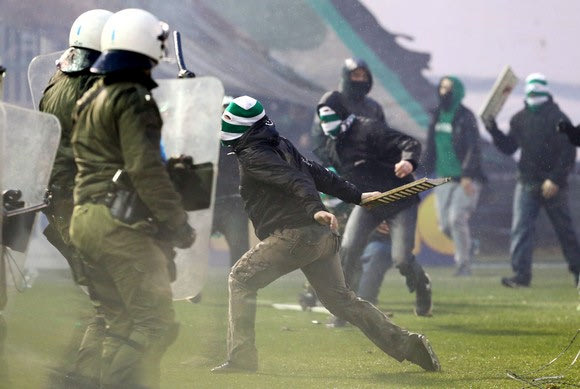 Αυτά όμως που ακολούθησαν δεν χωρούν στο ελληνικό ποδόσφαιρο. Σκηνές ντροπής με τους οπαδούς του Παναθηναϊκού να εισβάλουν στον αγωνιστικό χώρο και να ακολουθούν μάχες σώμα με σώμα με την αστυνομία.