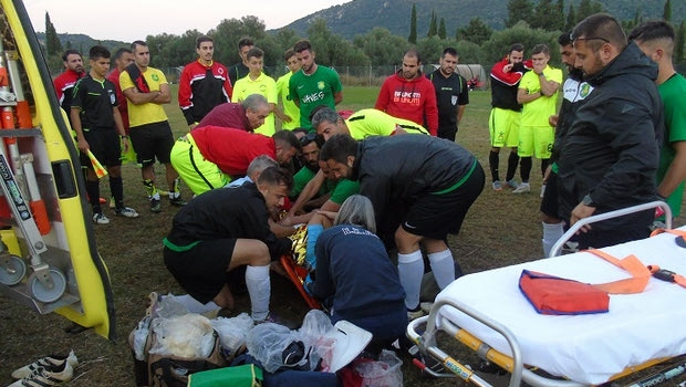 Ποδοσφαιριστής χτύπησε στην σπονδυλική στήλη και στον αυχένα, αλλά το ιατρείο του γηπέδου ήταν κλειδωμένο. Έσπασαν την πόρτα και δεν βρέθηκε φορείο, αλλά ξαπλώστρες παραλίας. Το ασθενοφόρο έφτασε 40 λεπτά αργότερα.