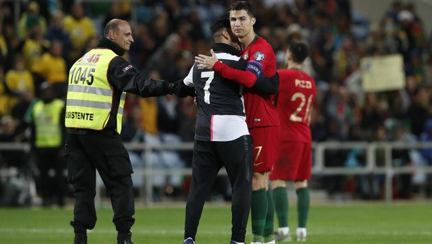 Η λατρεία για τον Κριστιάνο Ρονάλντο δεν έχει όρια και αυτό το διαπίστωσε και στο ματς με την Λιθουανία, με οπαδό να εισβάλλει στο γήπεδο με φανέλα της Γιουβέντους για μία selfie μαζί του.