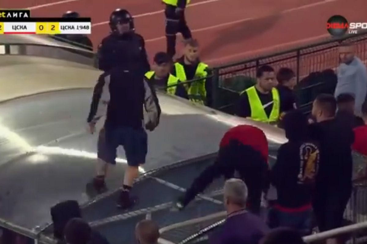 Η ΤΣΣΚΑ 1948 βρισκόταν μπροστά στο σκορ με 2-0 όταν στο 88ο λεπτό ένας χούλιγκαν της ΤΣΣΚΑ εισέβαλε στο γήπεδο κραδαίνοντας ένα ρόπαλο και εκφόβισε τους παίκτες που ήταν μπροστά του. Κατόπιν, έδωσε σύνθηκα για εισβολή και άλλων χούλιγκαν, οι οποίοι διέλυσαν τηλεοπτικό εξοπλισμό και διαφημιστικές πινακίδες και έδωσαν μάχες σώμα με σώμα με αστυνομικούς.