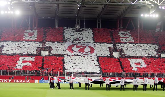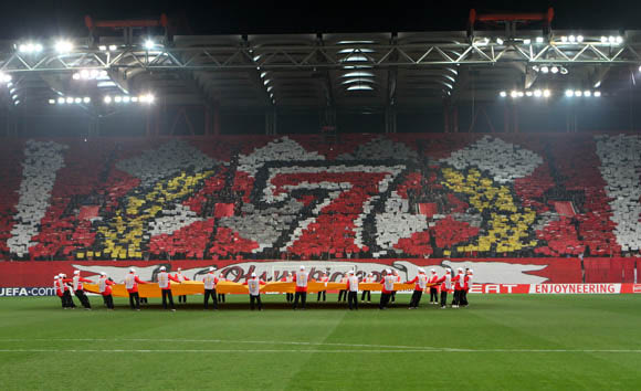 Το κορεό των οπαδών του Ολυμπιακού στον αγώνα με Σάλκε: