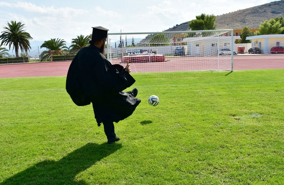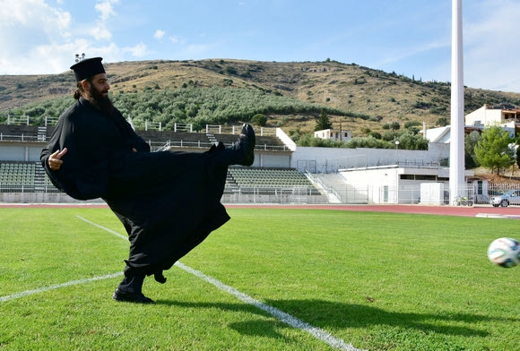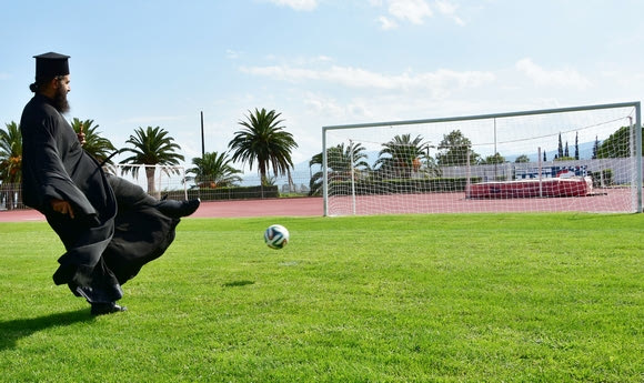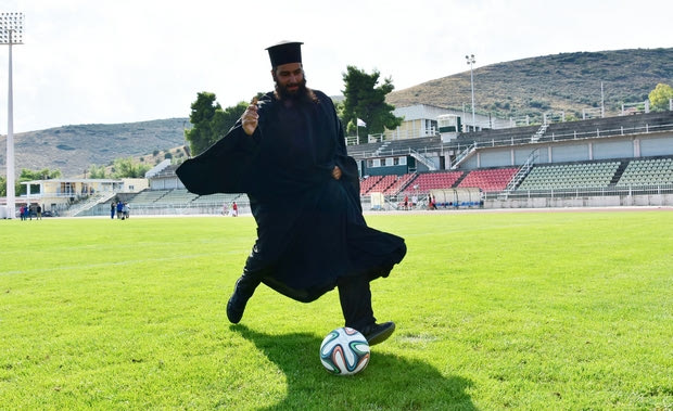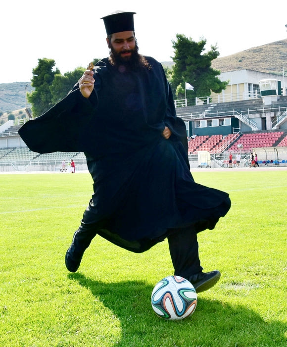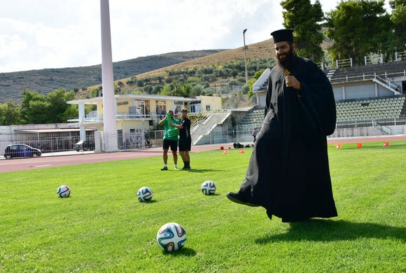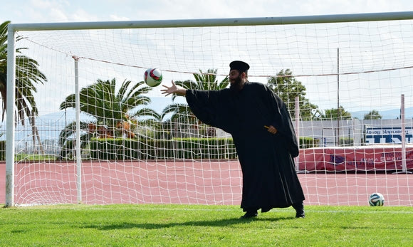 Χαμογελαστός, ευγενικός και με όρεξη για μπάλα, ο πατήρ Βασίλειος από τον Ι.Ν. Κοιμήσεως της Θεοτόκου στο Άργος, έδειξε ότι δεν έχει να ζηλέψει τίποτα από τους επαγγελματίες ποδοσφαιριστές.