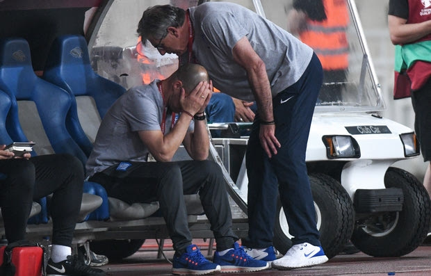 Το Sport24.gr επέλεξε τις πέντε φωτογραφίες από τη Eurokinissi, μετά από το τέλος της αναμέτρησης, που δείχνουν την απελπισία των διεθνών μας στη δεύτερη συνεχόμενη ήττα με τρία γκολ στο Ολυμπιακό Στάδιο.