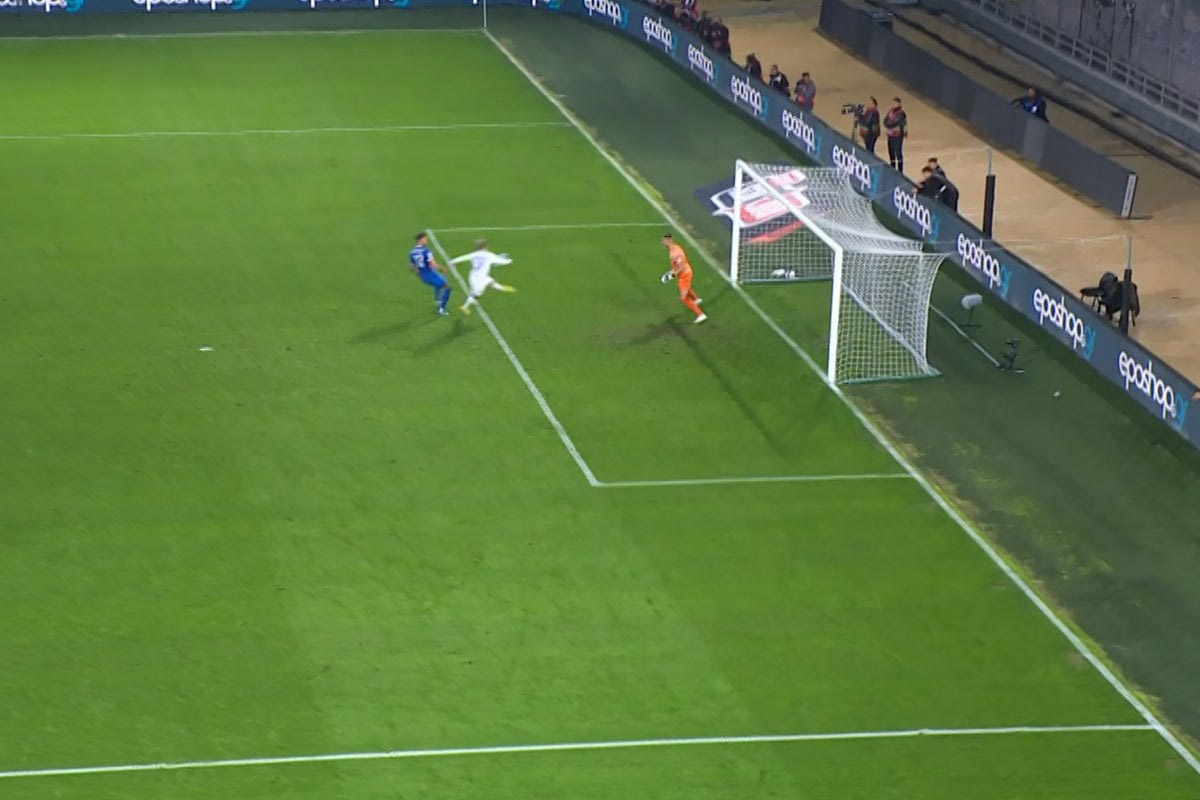 Τότε που ο Ντεμπελέ έβγαλε εξαιρετική μπαλιά στην πλάτη της ελληνικής άμυνας, με τον Χατζηδιάκο να μην αντιδράει και τον Βλαχοδήμο να μην βγαίνει από την εστία του, για να κάνει το μονοκόμματο πλασέ ο Γκριεζμάν αλλά τη μπάλα να μην του κάνει το χατίρι και να σταματήσει στο δεξί δοκάρι.