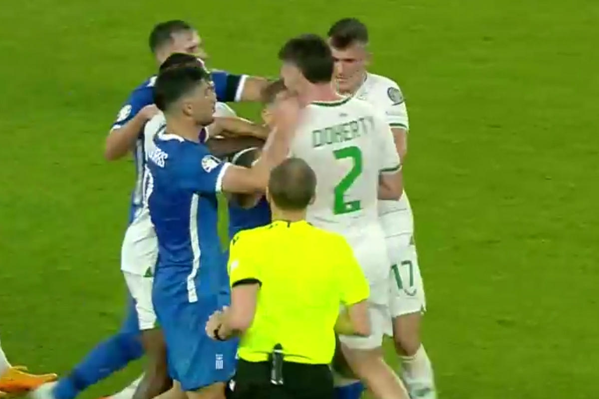 Το φινάλε στην αναμέτρηση της Ελλάδας με την Ιρλανδίας ήταν άκρως επεισοδιακό, με τους παίκτες των δύο ομάδων να παίρνουν μέρος σε γενική σύρραξη και τον Ντόχερτι να αποβάλλεται με κόκκινη κάρτα για σπρώξιμο στον Τζαβέλλα.