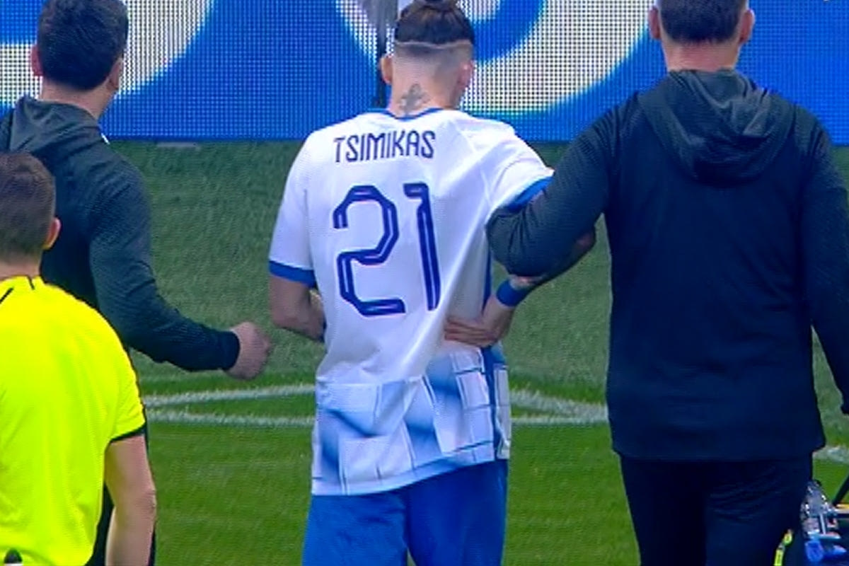 Ο Κώστας Τσιμίκας δέχτηκε ένα χτύπημα στα πλευρά με αποτέλεσμα να έχει ενοχλήσεις και να αντικατασταθεί στο 22' του φιλικού της Ελλάδας με τη Λιθουανία.