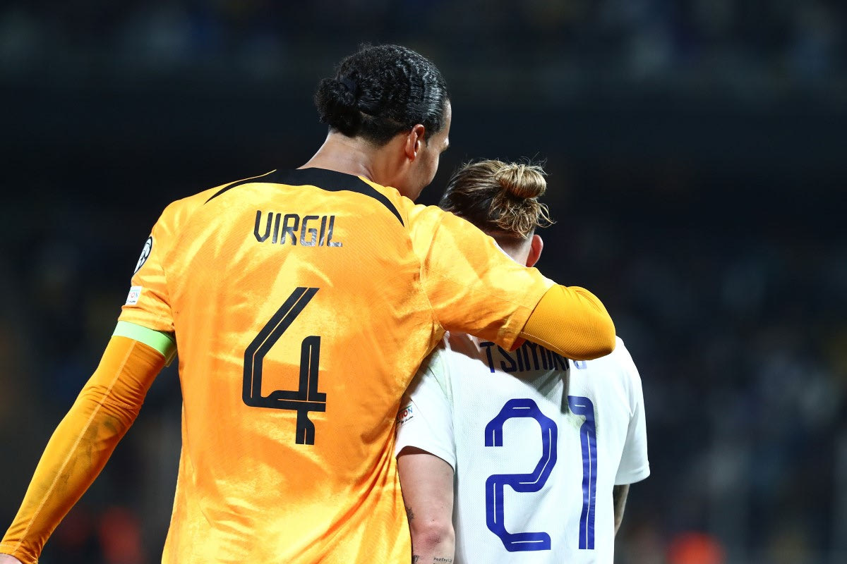 Αμέσως μετά τη λήξη του αγώνα για τα προκριματικά του Euro 2024, ο 32χρονος κεντρικός αμυντικός έσπευσε να αγκαλιάσει τον Έλληνα συμπαίκτη του στη Λίβερπουλ, Κώστα Τσιμίκα, για να τον παηγορήσει για την ήττα, που στέρησε από την ομάδα του Γκουστάβο Πογιέτ την απευθείας πρόκριση στη μεγάλη διοργάνωση.