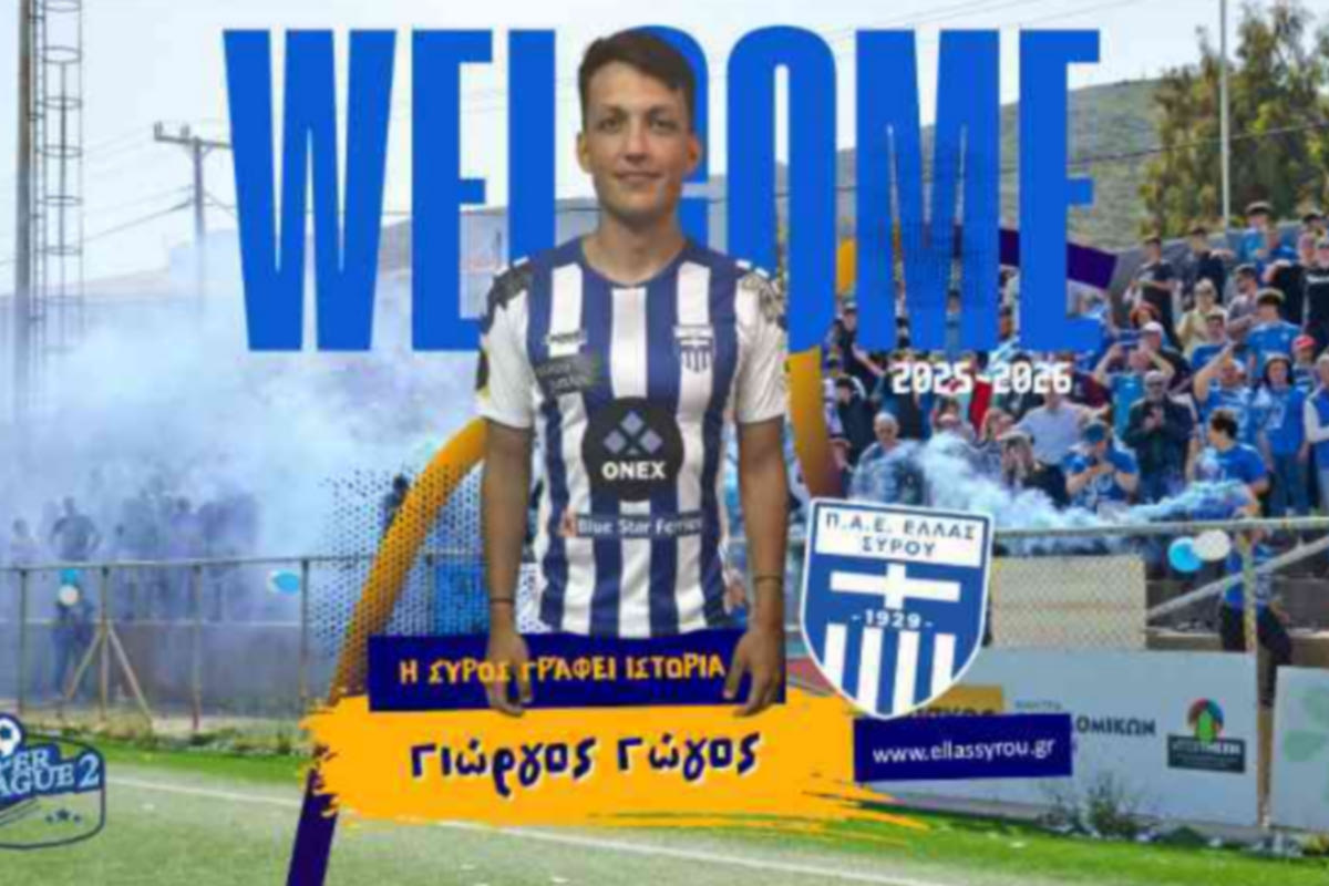 Η Ελλάς Σύρου καλωσορίζει θερμά τον Γιώργο και του εύχεται υγεία, δύναμη και πολλές επιτυχίες με τα χρώματα της ομάδας μας!”.