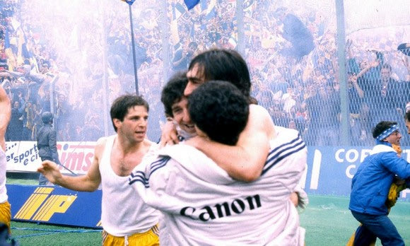 Εκείνη η ομάδα του Οσβάλντο Μπανιόλι πανηγύρισε τον τίτλο έχοντας μόνο 17 παίκτες στο ρόστερ της και με έναν απολογισμό άκρως εντυπωσιακό: 15 νίκες, 13 ισοπαλίες, 2 ήττες με 42 γκολ υπέρ και μόλις 19 κατά. Όσο για το ματς που θυμούνται όλοι ακόμα και σήμερα είναι αυτό στην έδρα της Αταλάντα (29η αγωνιστική) πριν από ακριβώς 31 χρόνια (12/5/1985), καθώς κατέκτησε μαθηματικά τον τίτλο με το 1-1 που απέσπασε στο Μπέργκαμο.